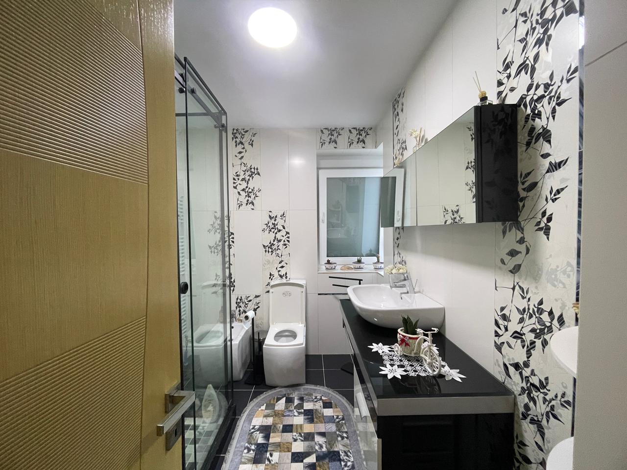 -Ofrohet për shitje një apartament modern dhe shumë funksional, me organizim 2+1 + 2 tualete, me sipërfaqe totale 105 m², i pozicionuar në katin e 3-të të një pallati të mirëmbajtur.
