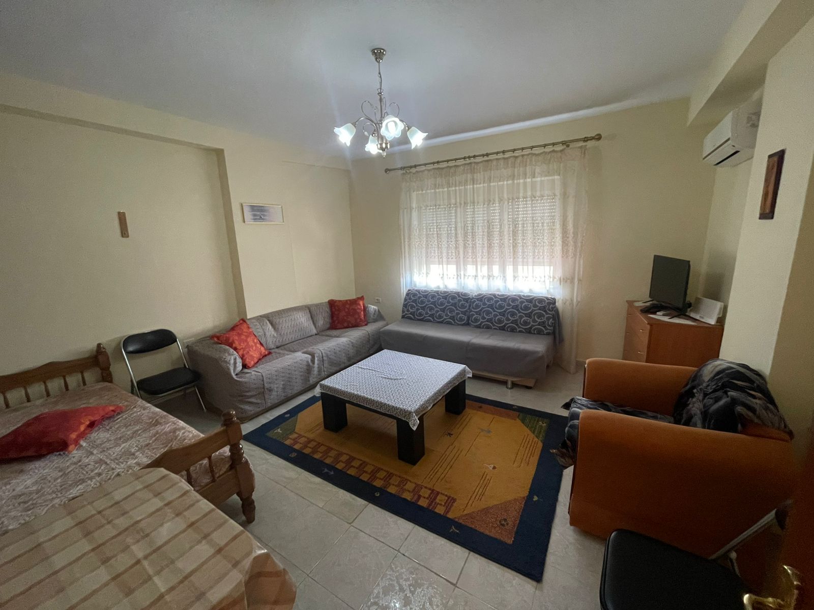 -2 dhoma gjumi, 1 dhomë ndenjeje dhe 1 kuzhinë e përbashkët, e pajisur plotësisht për një jetesë komode.