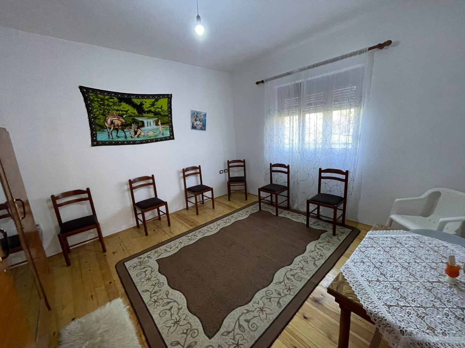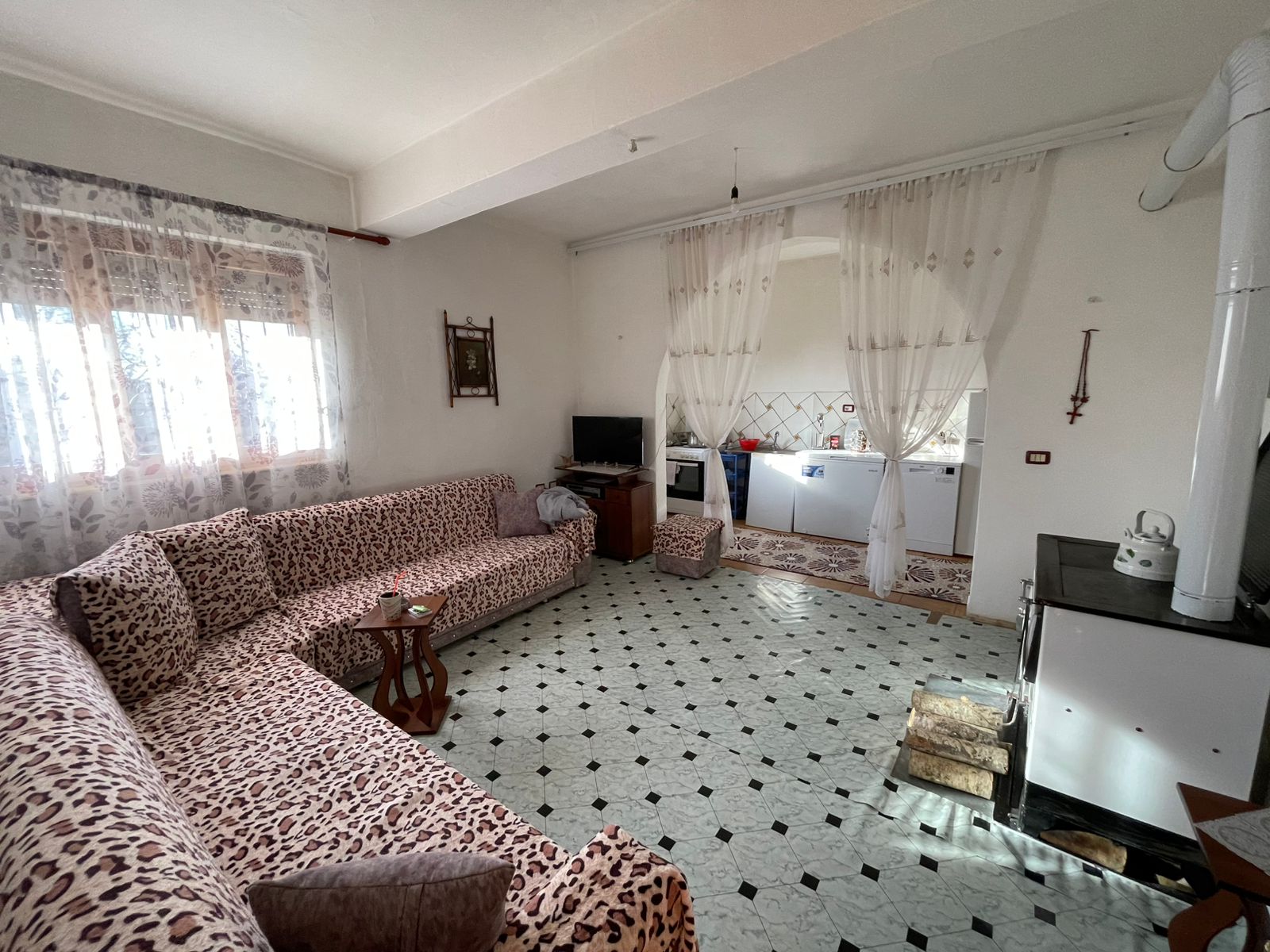 -Shtëpia ofron një ambient të bollshëm, oborr të rrethuar dhe mundësi organizimi sipas nevojave të familjes.